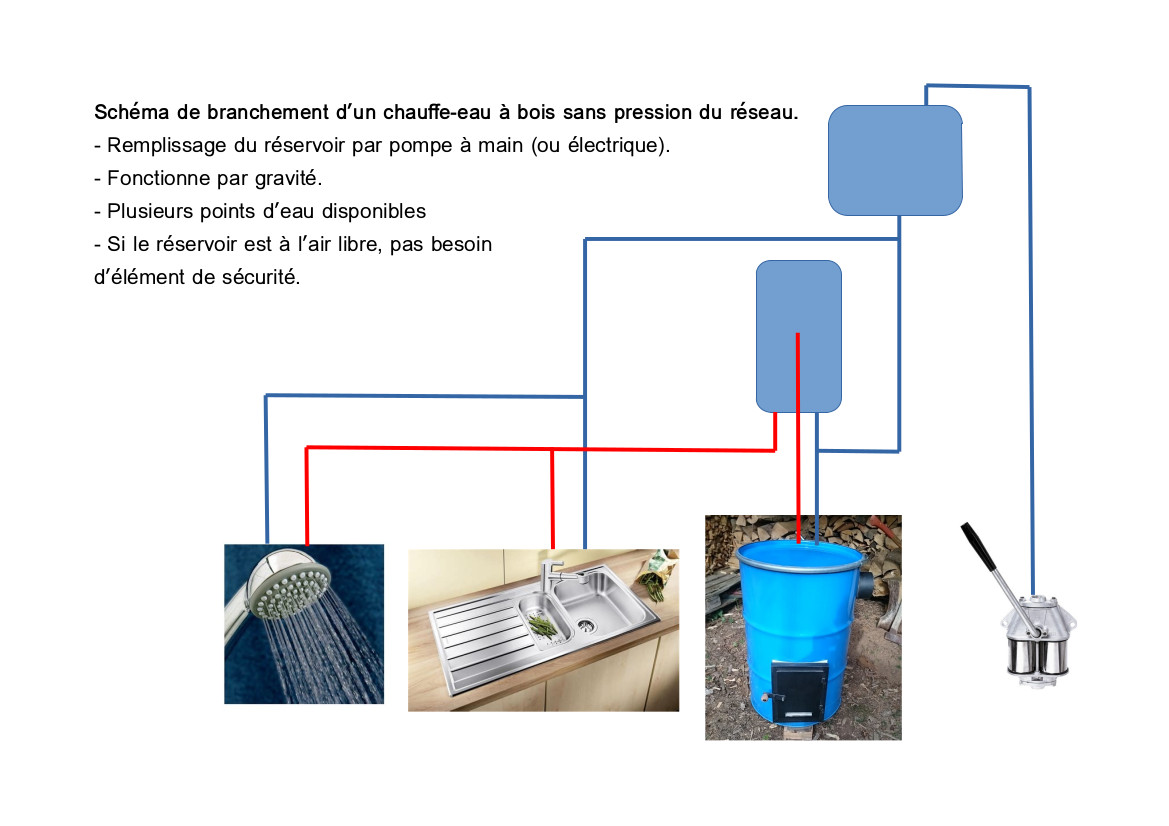 Chauffe-eau à bois avec échangeur à raccorder sur un cumulus classique.