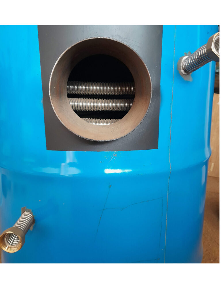 L’échangeur est en tube inox annelé DN20 , 6m linéaires soit une surface d’échange de 0,67m².